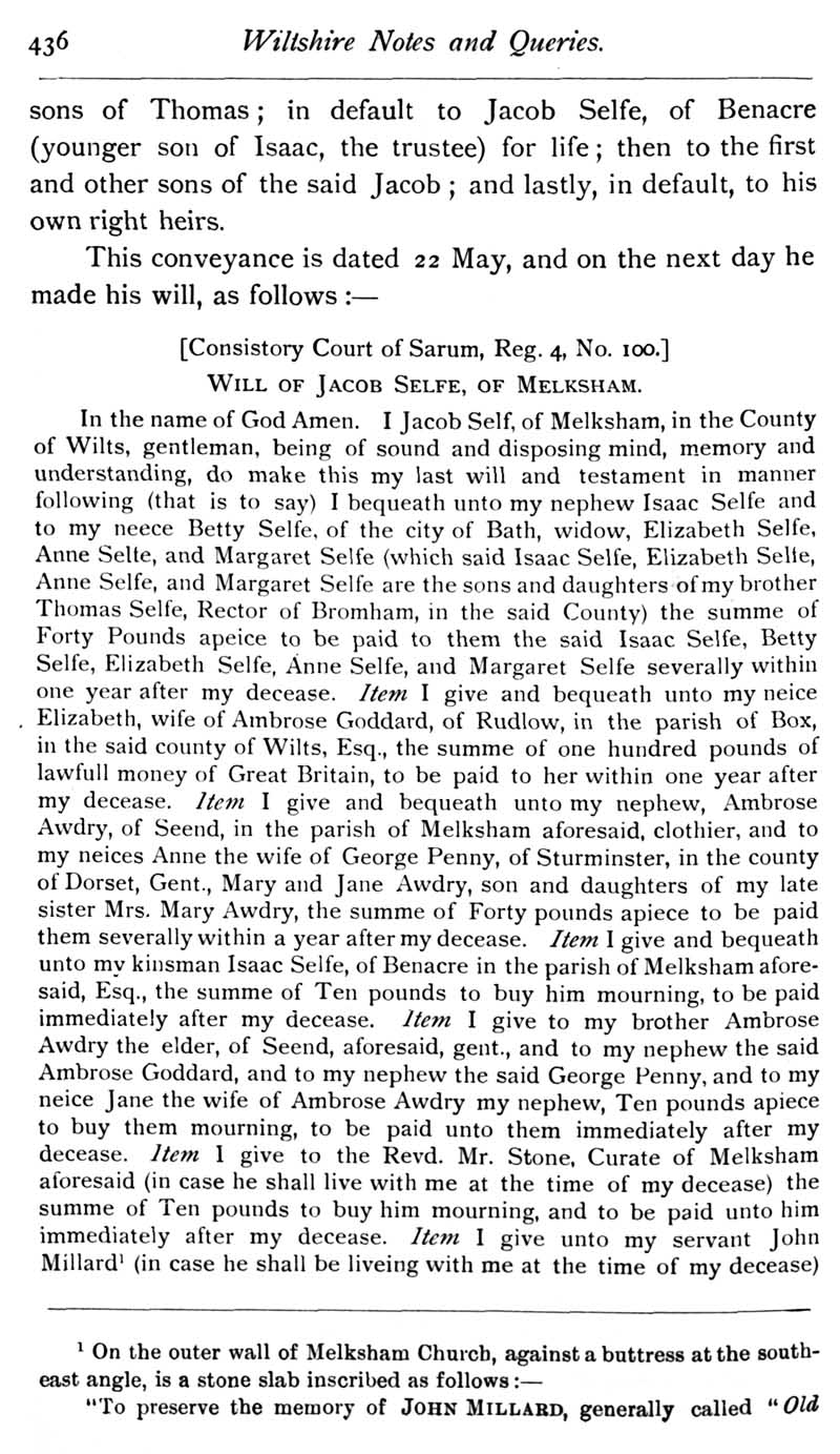 Chapter 11 Place House, Melksham; Records of Wiltshire Parishes; Quakerism in Wiltshire; Feet of Fines for Wiltshire; Wig Curlers; Sale of the Townshend Heirlooms; John Noyes of Calne; Brass of Edith Matyn; Queries; Replies; Notes on Books