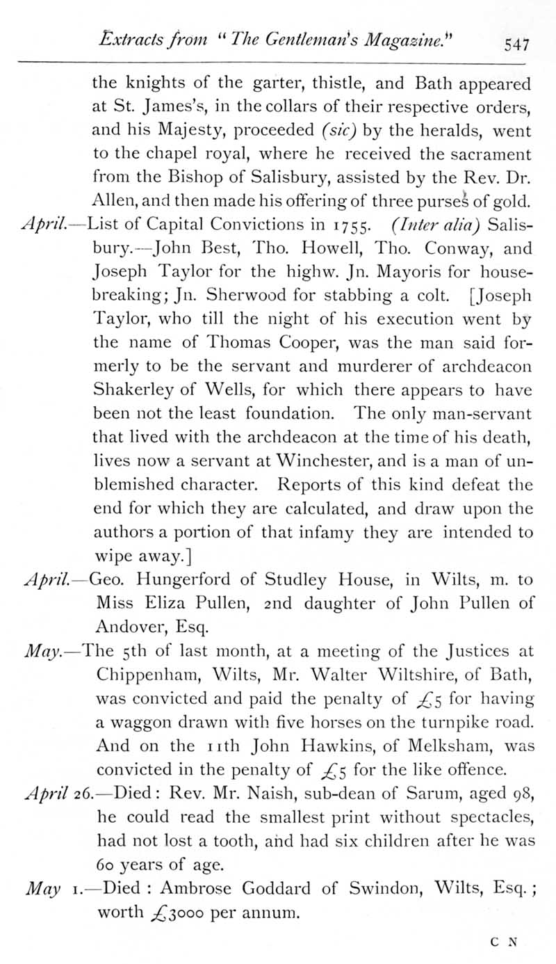 Page 18 Wiltshire extracts from The Gentleman's Magazine for 1755.