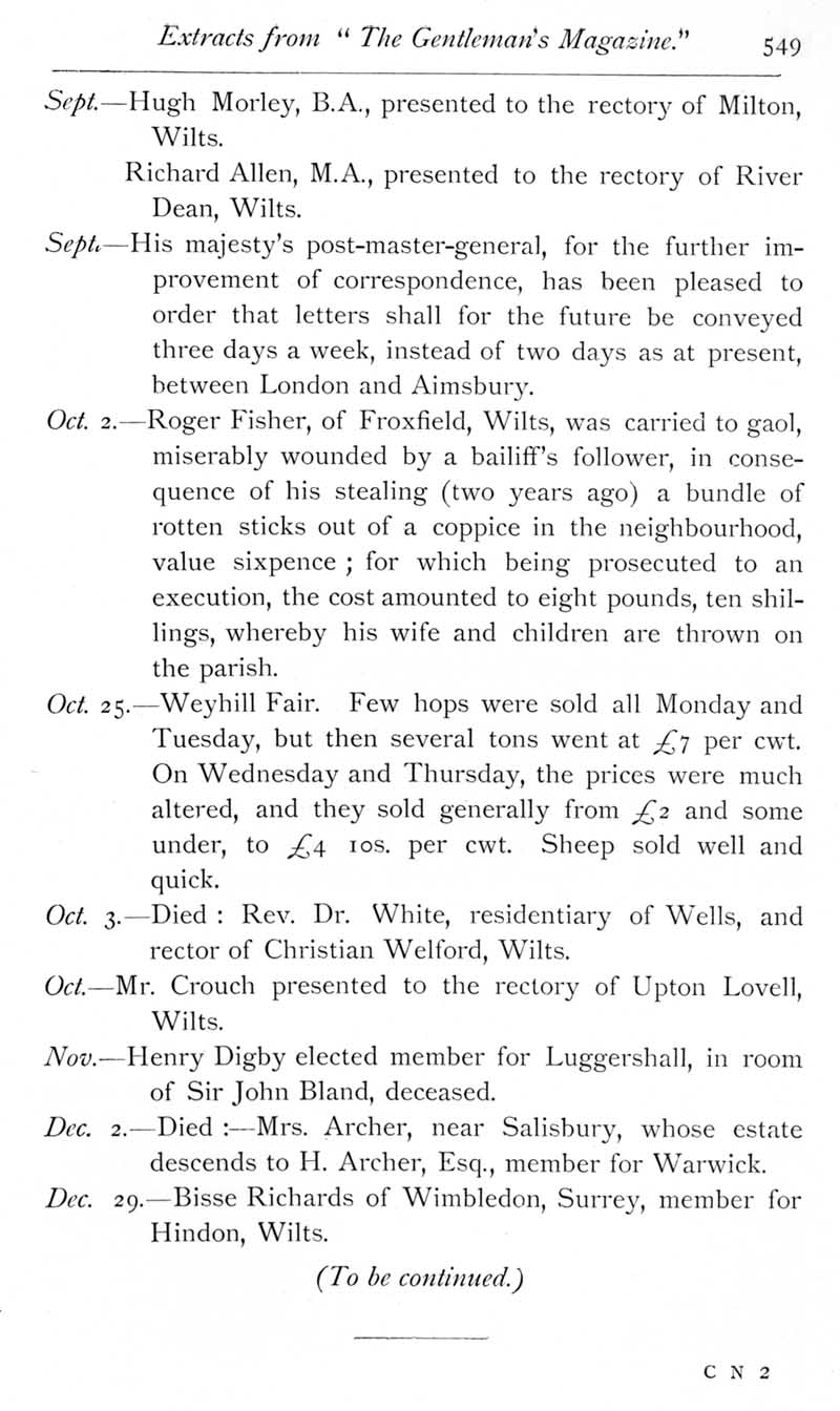 Page 20 Wiltshire extracts from The Gentleman's Magazine for 1755