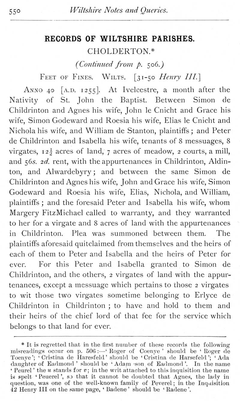 Page 21 Cholderton records in the Public Record Office.