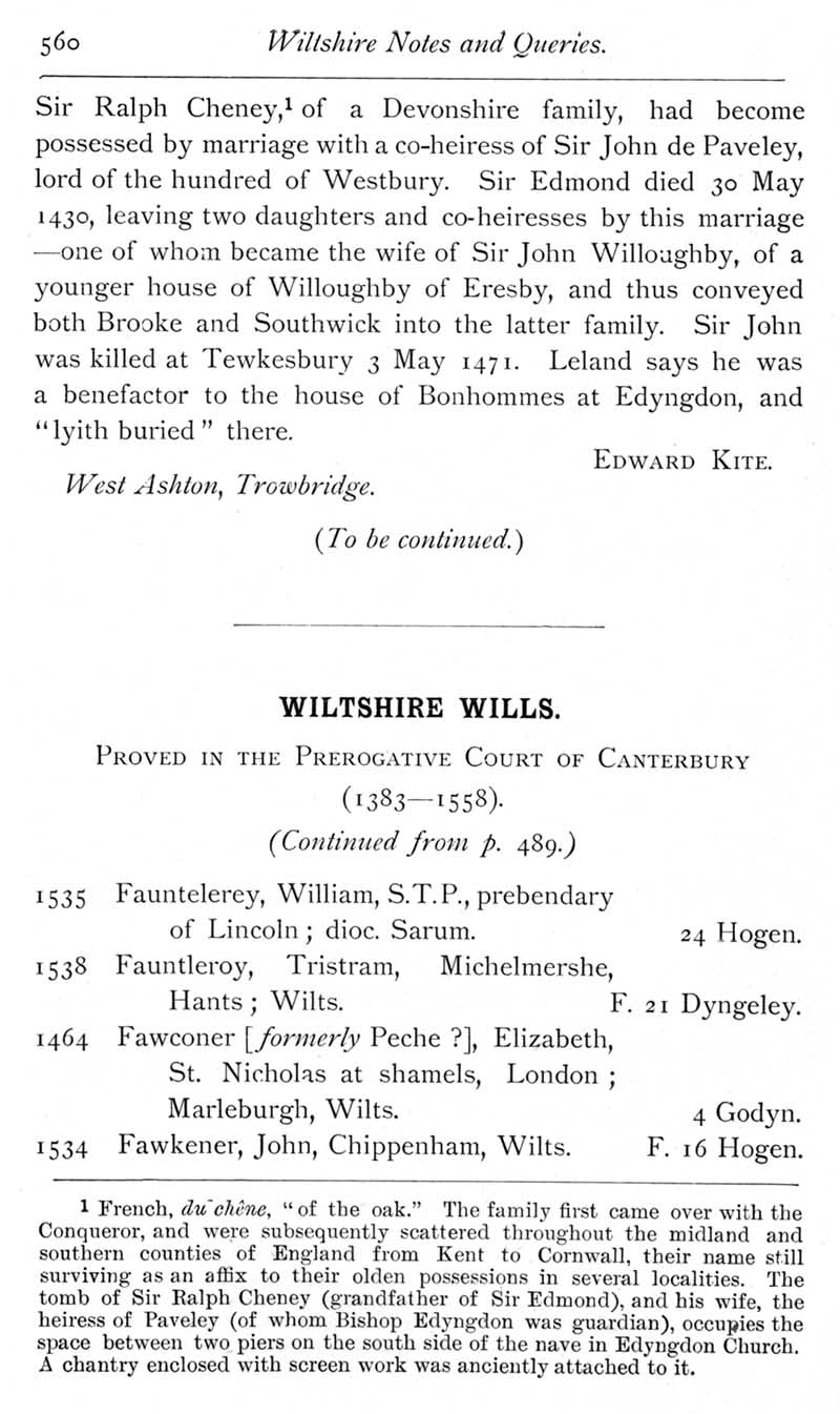 Page 31 Southwick Court in North Bradley. Wiltshire wills proved in the Prerogative Court of Canterbury, 1383-1558 - Fauntlerey to Fawkener.