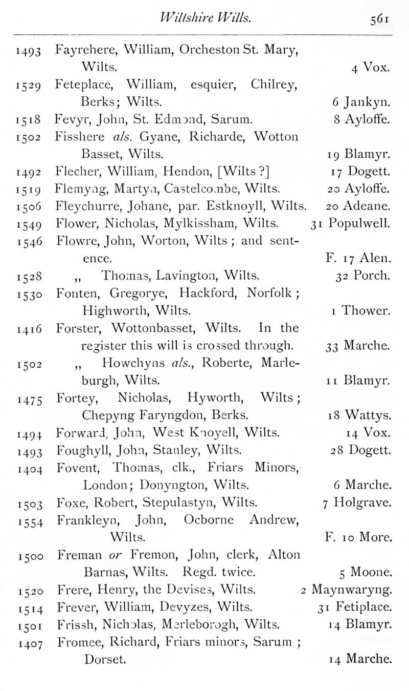 Page 32 Wiltshire wills proved in the Prerogative Court of Canterbury, 1383-1558 - Fayrehere to Fromee.