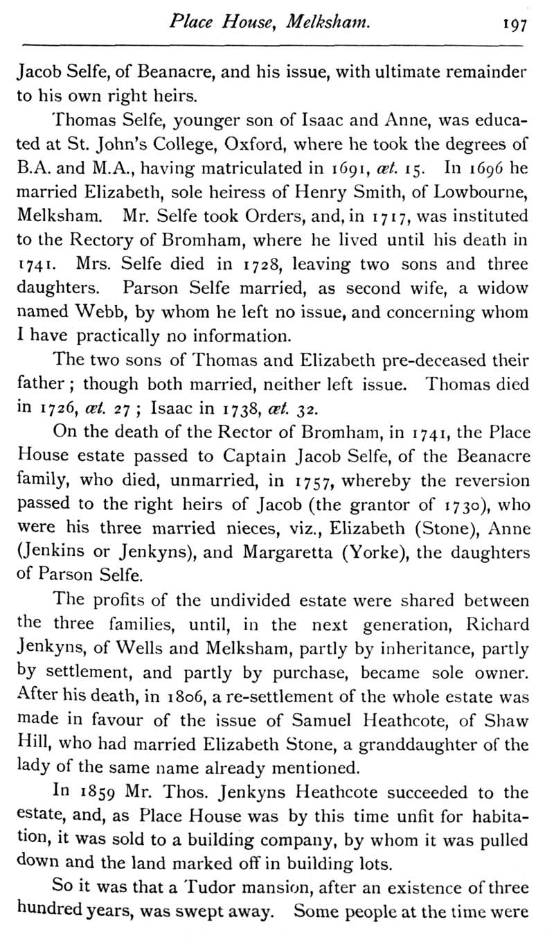 Chapter 11 Place House, Melksham; Records of Wiltshire Parishes; Quakerism in Wiltshire; Feet of Fines for Wiltshire; Wig Curlers; Sale of the Townshend Heirlooms; John Noyes of Calne; Brass of Edith Matyn; Queries; Replies; Notes on Books