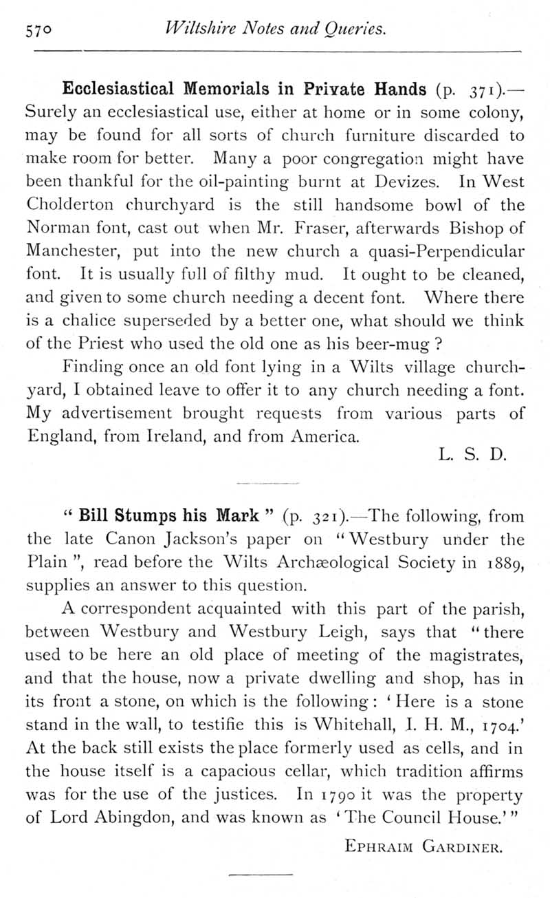 Page 41 Old font at Cholderton. Initials inscribed on house at Bratton.