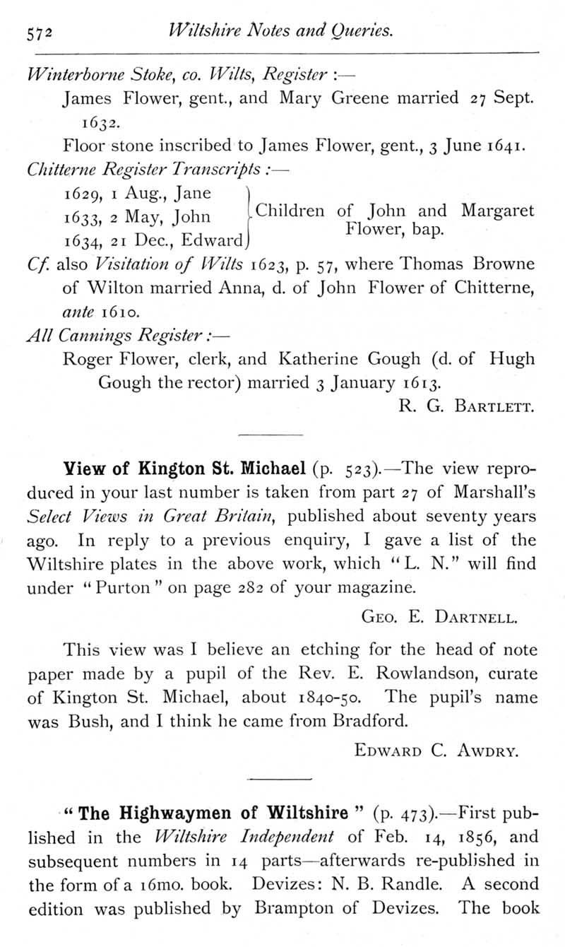 Page 43 Flower family in north Wiltshire. Engraving of Kington St Michael. Book on Wiltshire highwaymen.