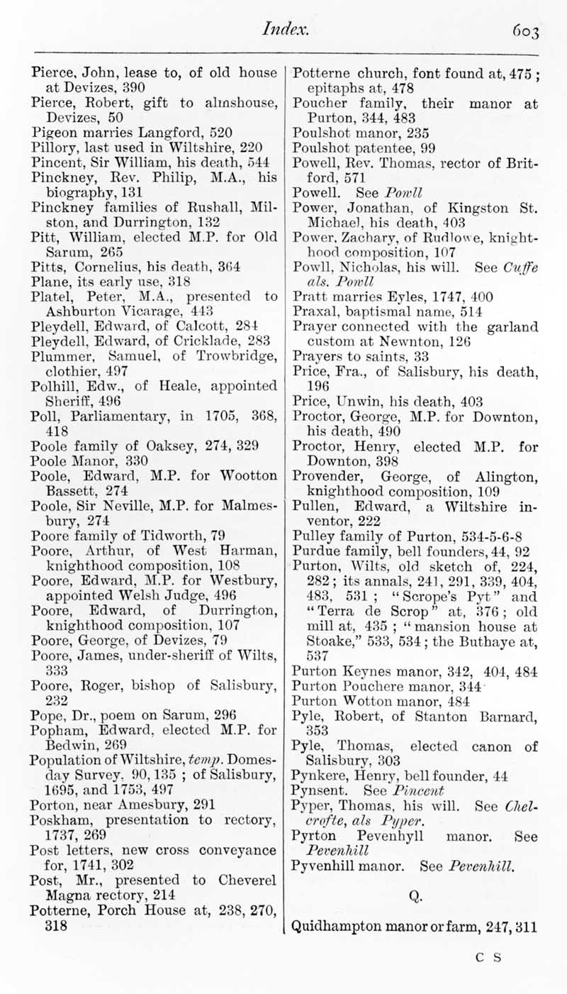 Page 25 Index - Pierce, John, to Quidhampton.