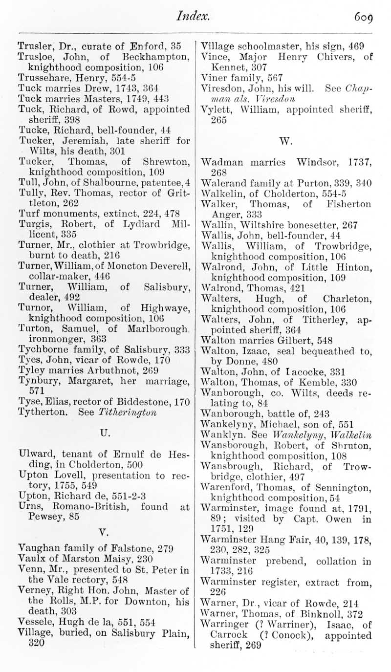 Page 31 Index - Trusler, Dr., to Warringer, Isaac.