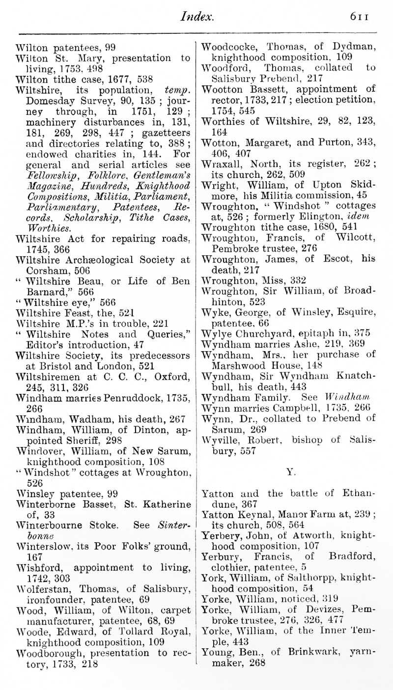 Page 33 Index - Wilton patentees to Young, Ben.
