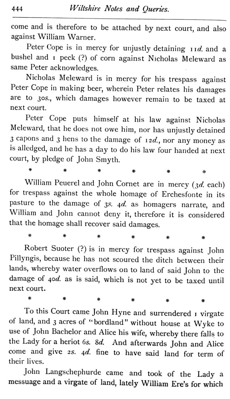 Chapter 11 Place House, Melksham; Records of Wiltshire Parishes; Quakerism in Wiltshire; Feet of Fines for Wiltshire; Wig Curlers; Sale of the Townshend Heirlooms; John Noyes of Calne; Brass of Edith Matyn; Queries; Replies; Notes on Books