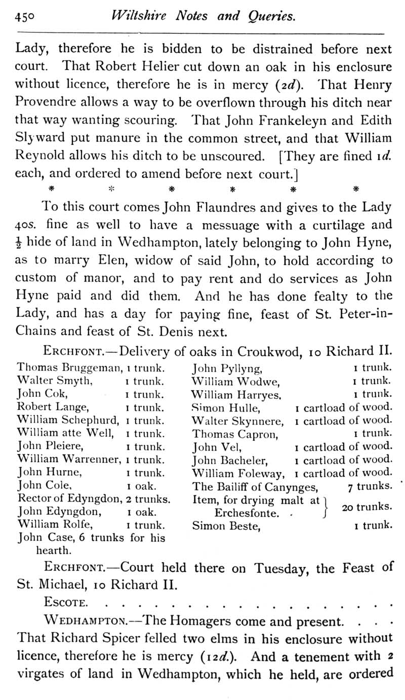 Page 18 Records of Wiltshire Parishes: Urchfont with Stert.