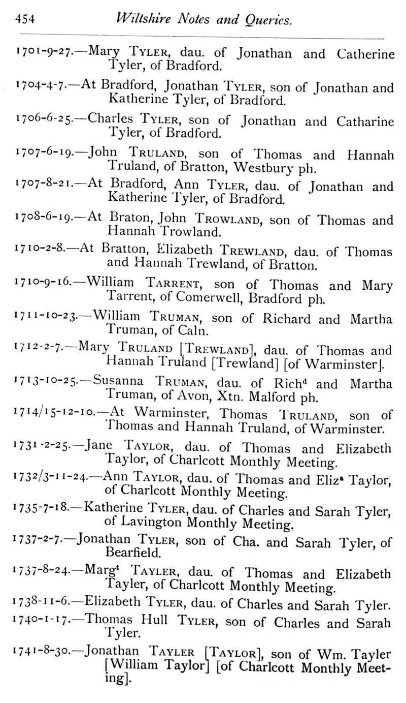 Chapter 11 Place House, Melksham; Records of Wiltshire Parishes; Quakerism in Wiltshire; Feet of Fines for Wiltshire; Wig Curlers; Sale of the Townshend Heirlooms; John Noyes of Calne; Brass of Edith Matyn; Queries; Replies; Notes on Books