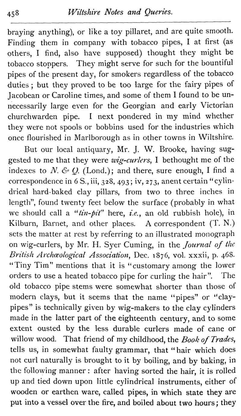 Chapter 11 Place House, Melksham; Records of Wiltshire Parishes; Quakerism in Wiltshire; Feet of Fines for Wiltshire; Wig Curlers; Sale of the Townshend Heirlooms; John Noyes of Calne; Brass of Edith Matyn; Queries; Replies; Notes on Books