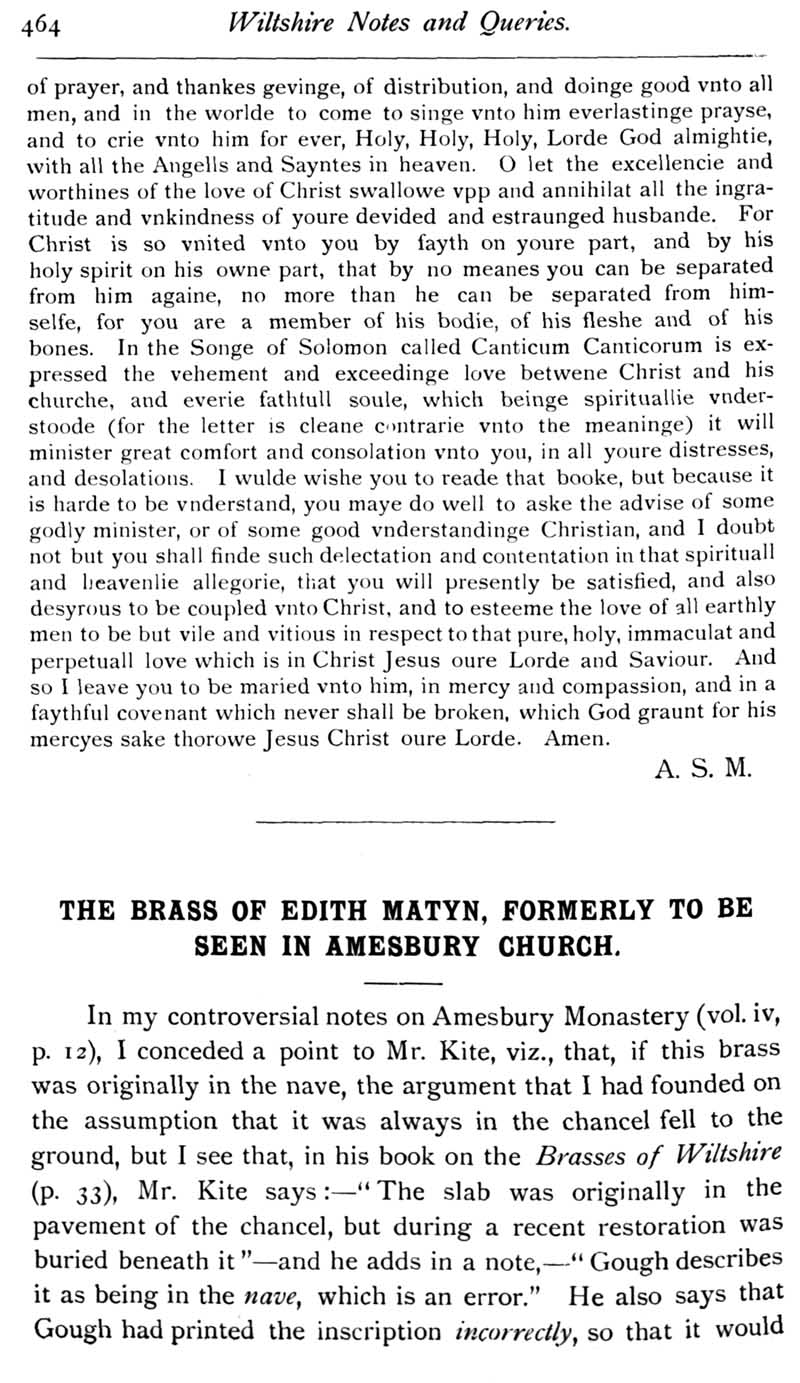 Chapter 11 Place House, Melksham; Records of Wiltshire Parishes; Quakerism in Wiltshire; Feet of Fines for Wiltshire; Wig Curlers; Sale of the Townshend Heirlooms; John Noyes of Calne; Brass of Edith Matyn; Queries; Replies; Notes on Books