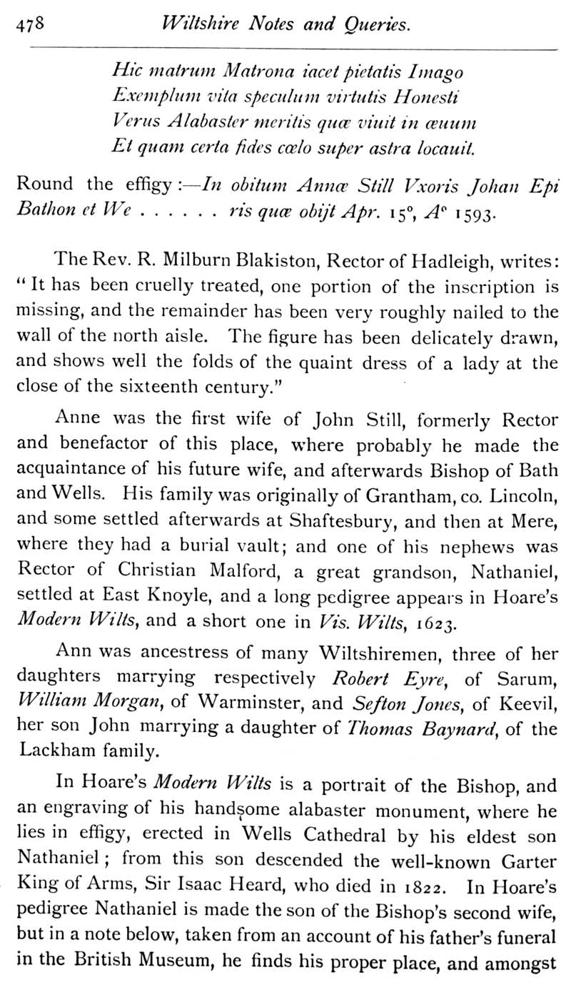 Chapter 11 Place House, Melksham; Records of Wiltshire Parishes; Quakerism in Wiltshire; Feet of Fines for Wiltshire; Wig Curlers; Sale of the Townshend Heirlooms; John Noyes of Calne; Brass of Edith Matyn; Queries; Replies; Notes on Books