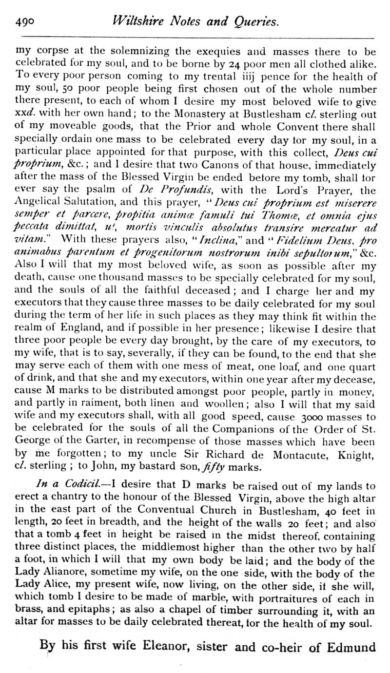 Chapter 12 Montacute, Earl of Salisbury; Records of Wiltshire Parishes; Quakerism in Wiltshire; Feet of Fines for Wiltshire; Sevenhampton; Eyre of Wilts; Eyre of Bromham; Monumental Inscriptions in Corsham Church; Blake; Miscellanea; The Polecat in Wiltshire; Queri